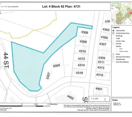 A rare find, a 2 acre vacant parcel of land with Great Slave Lake views. Zoned RC-Residential Central this zoning allows for a variety of uses from multi-family to motel/hotel and institutional uses. Just shy of 79,000 sq. ft. with close proximity to downtown.