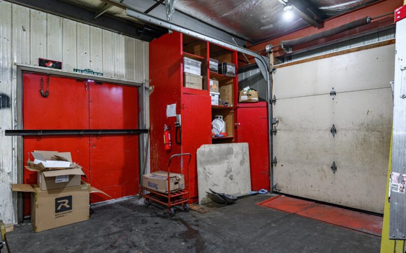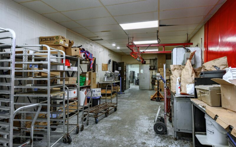 At the side of the building there is a loading dock and overhead door connecting to the rear warehouse and storage areas for easy shipping and receiving.