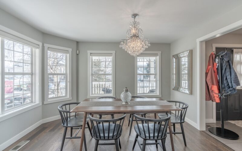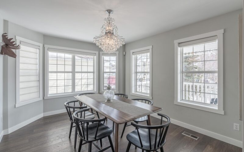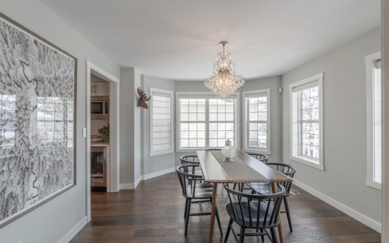 At the front, a spacious porch is the perfect spot to enjoy your morning coffee and sunrise. Step inside and you’re immediately welcomed by high-end finishes and thoughtfully designed living spaces. A bright, formal dining area sits just off the entry and kitchen, ideal for family dinners or game nights.