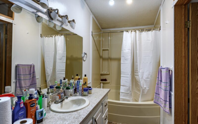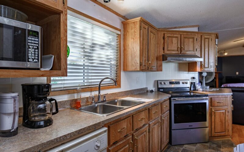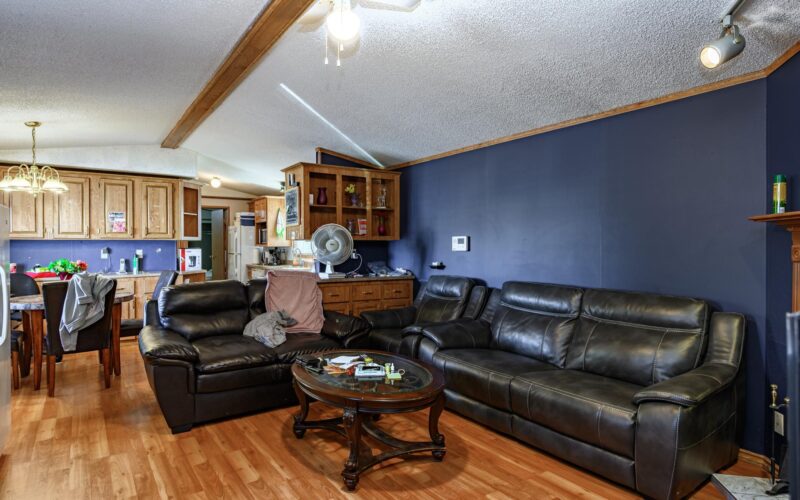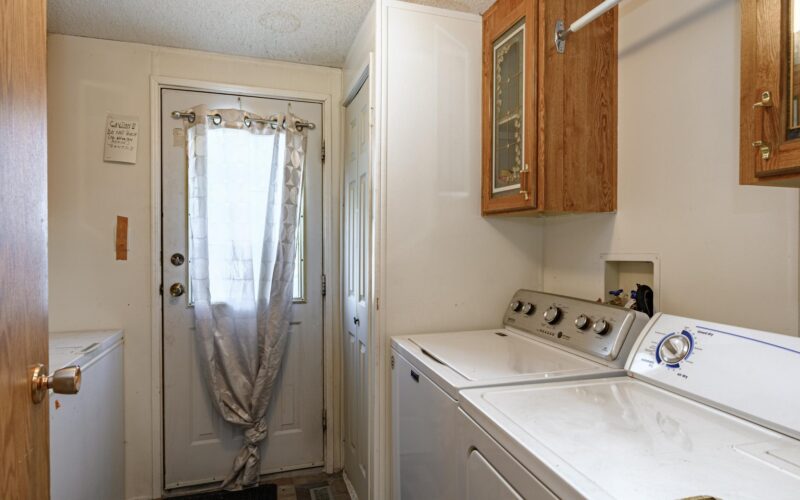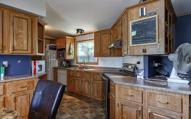 The home comes with fridge, stove, dishwasher, microwave, washer, dryer, window coverings, a window mounted air conditioner, 2 sheds and even a lawnmower.