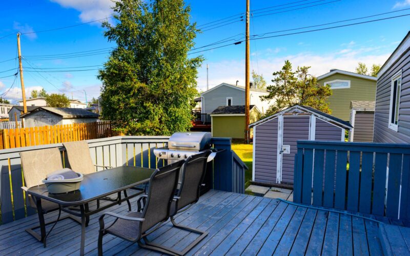 The oversized pie shape lot is landscaped and has a spacious deck and two sheds.