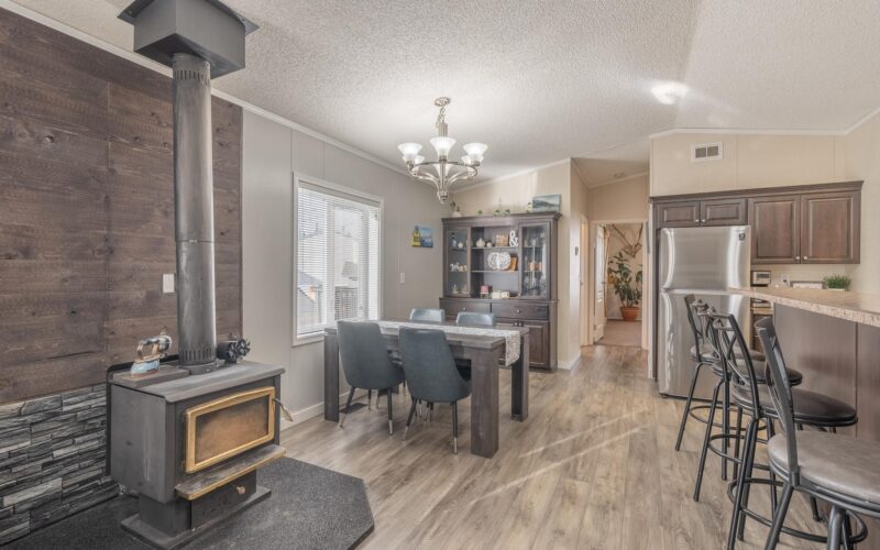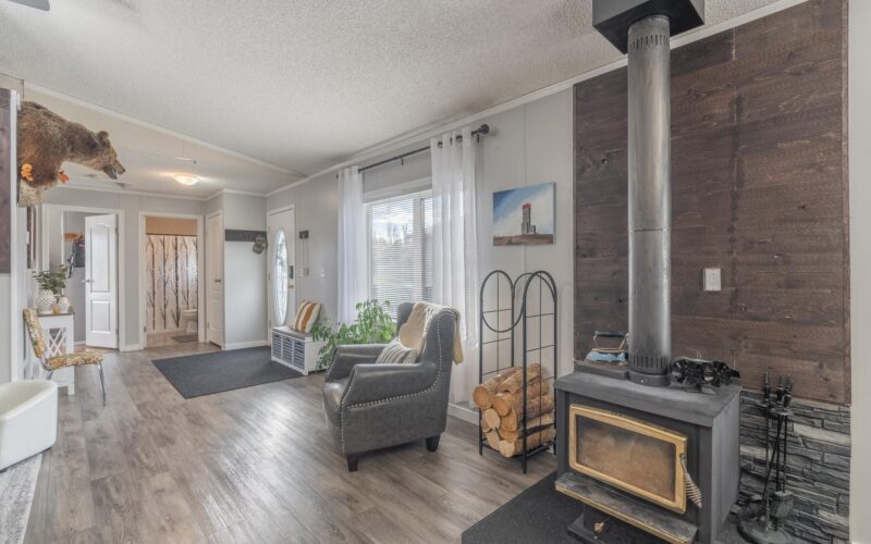 Built in 2011, this home includes several modern and energy-efficient upgrades meeting EnerGuide 80 standards, such as a propane furnace, HRV system, hot water on demand, triple-pane windows, and high insulation levels — keeping your utility bills low and your comfort high all year long! Step inside the home to an inviting open-concept living area with vaulted ceilings and brand-new waterproof luxury vinyl plank flooring throughout. The kitchen features rich dark cabinetry, stainless steel appliances (with a propane stove hookup available), and a walk-in pantry for added storage. A WETT-certified wood stove adds warmth, charm, and that cozy northern touch for winter nights!