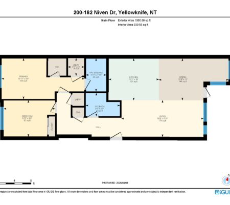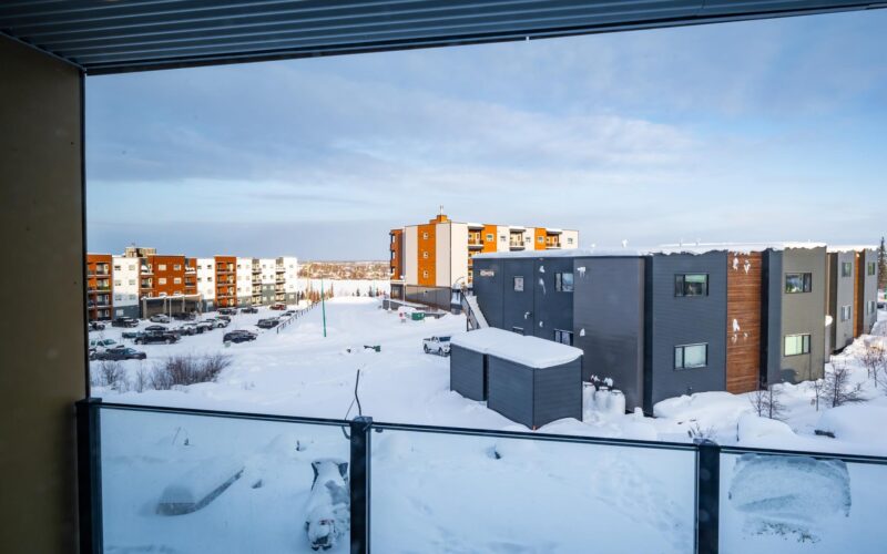 Situated in the Niven Lake subdivision, walkable to downtown and Niven Lake walking, sledding & skiing trails accessing both Niven Lake & Great Slave Lake. 2nd floor 2 BR/2 bath condo with immediate possession. The detached single heated garage with a concrete slab can accommodate an SUV sized vehicle. The front deck receives morning sun and offers partial big lake views. One paved & electrified parking stall plus garage. Inside On-site mail boxes. Laminate and laminate tile flooring. The well-appointed kitchen features granite counter-tops, cappuccino colored cabinets including stainless appliances, & numerous bar stool spots along the kitchen peninsula with pendant lighting making it great for entertaining. The kitchen also features a tiled backsplash, under cabinet lighting, & a double stainless sink. Pot lighting in kitchen living and dining areas. The bathrooms features granite vanity tops & features a top mounted glass vessel sinks & full tiled tub & shower surrounds. Appliances are a mix of Maytags & Whirpool.