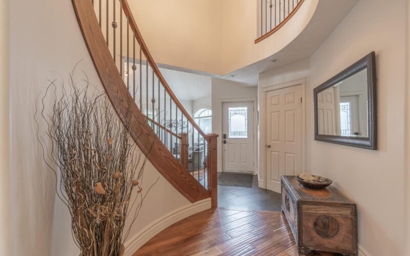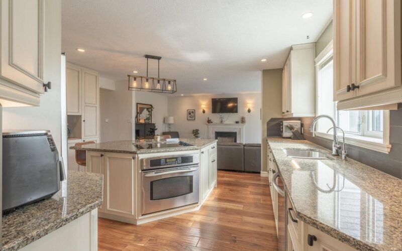 An exceptional home in a premium neighborhood. 223 Niven Drive is a beautiful 5 bedroom 3 bathroom home overlooking Niven Lake. This home truly has it all, on the main level enter into the spacious entry with large coat closet for all the winter gear. The open main living featuring a brand new Hearthland cast iron wood stove and spacious dining room are perfect for large families or those who like to host. In addition to the elegant custom kitchen with locally crafted cabinetry is a second well sized family room with a propane fireplace leading out onto the 24×12 deck with views of Niven Lake. A bedroom, dedicated laundry room and garage access round out the main level. On the top level is the master + ensuite, 2 more bedrooms and a 4th flex room perfect as an oversized bedroom OR a family room. A second washroom and a ton of closet space also on the upper level. Home features a massive triple garage, salt water hot tub and fire pit! New hard wood floors throughout. See it today! Inspection available.