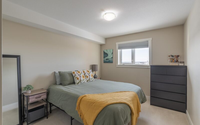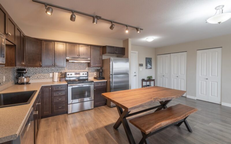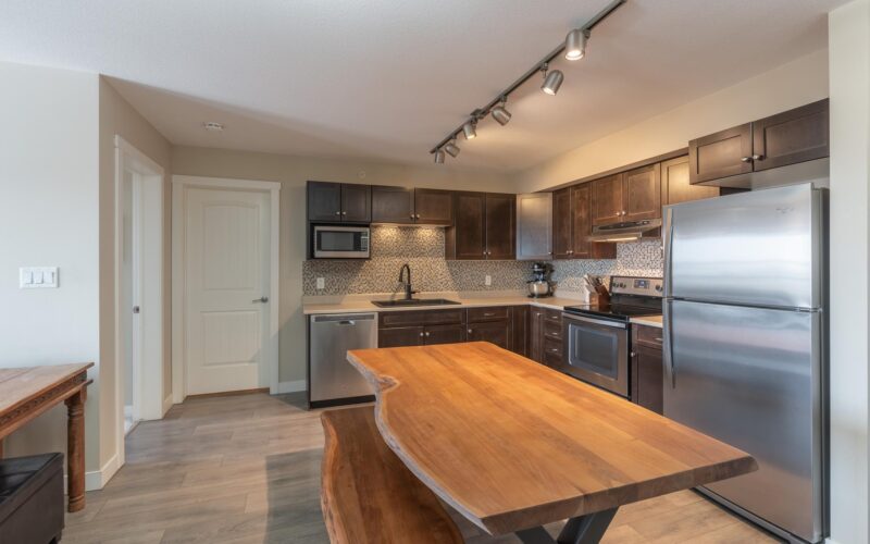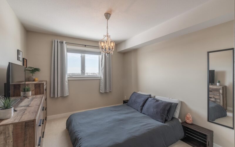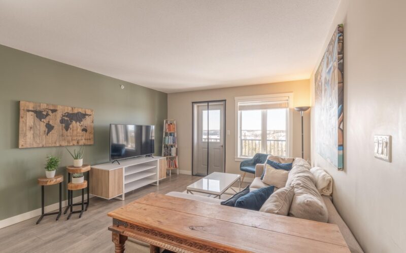Highly sought after 4th floor condo with spectacular views from the north facing deck to the peace of trees & greenspace. This top floor condo has 2 bedrooms and 1 bath with a location in a quiet residential neighbourhood close to downtown and loads of places to walk your dog plus adjacent to skiing, walking and snowmobile trails. Open concept floorplan with 904 sf, dark maple cabinets, stainless whirlpool appliances in the kitchen with a double Silgranite sink. The generous laundry at 5.7’ x 13.6 sf offers always much needed extra storage space with a front load washer/dryer. The building has excellent soundproofing between condos plus it has highly energy efficient insulation values. The condo board keeps the common areas in excellent shape with interior painting of hallways and entrance, carpets in hallways and stairwells, upgraded hot water system – install of 2 new stainless steel storage tanks- designed to be more durable and longer lasting. The majority of any condo fee is for insurance for the condo building its self which means very low homeowner insurance costs for the owners, usually around $500.00. The only utility an owner pays is electricity. Condo fee increase was February 2026 and no others planned to date. REALLY? WOULDN’T YOU WANT TO LIVE HERE?