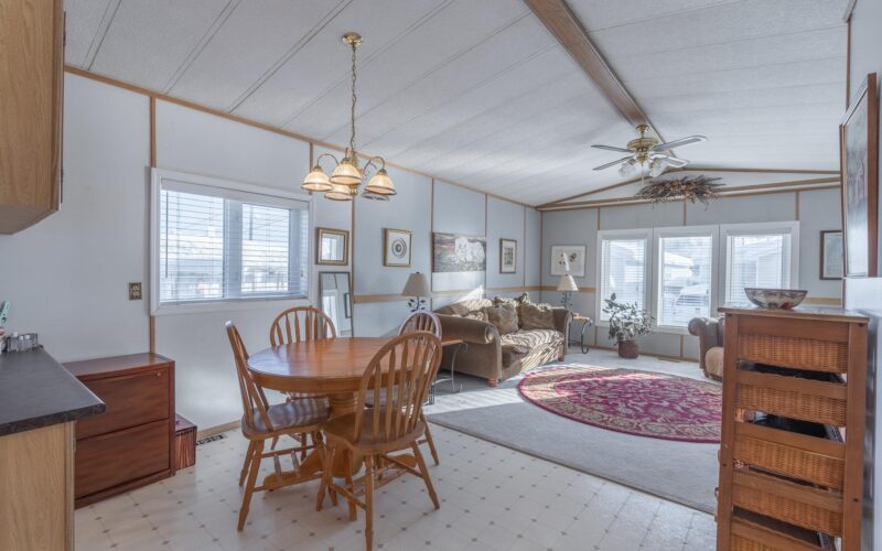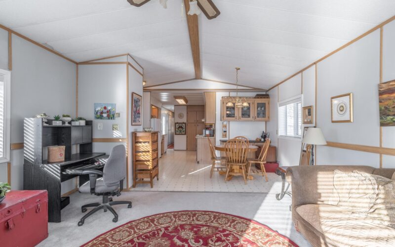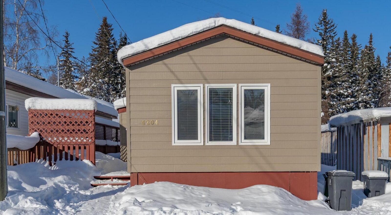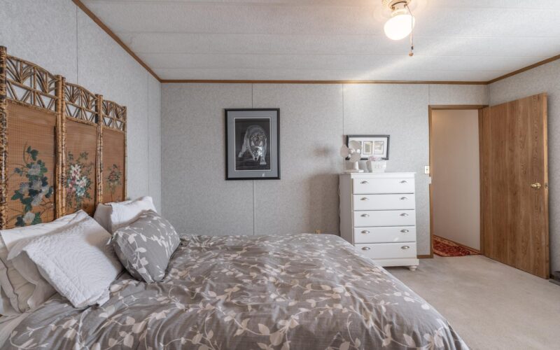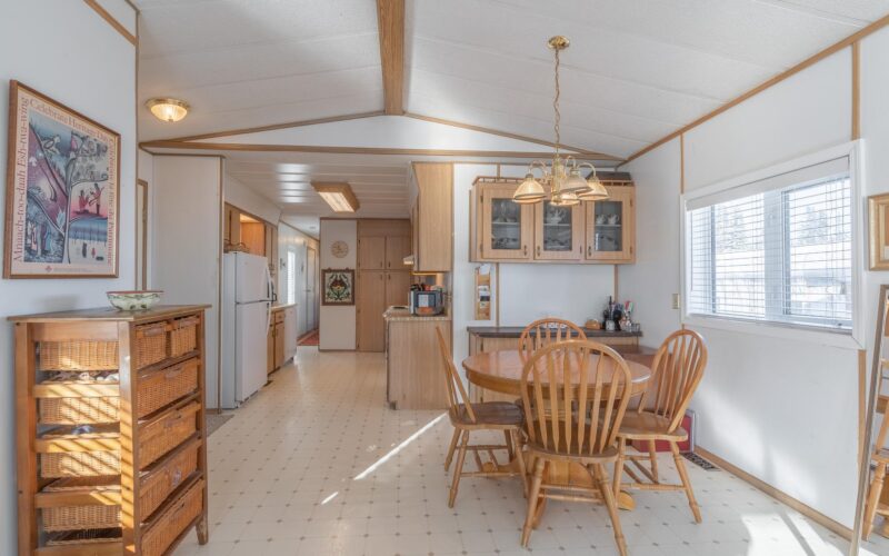 Step inside through the spacious entryway addition, which is ideal for storing your outdoor gear, tools, and everything that comes with northern living. The main living space blends classic charm with an open concept feel, due to high cathedral ceilings and large windows that really create a bright and welcoming atmosphere in the living room and dining area. The galley kitchen offers ample cabinetry, plus an additional pantry closet for extra storage. Just around the corner, a laundry area, and a full bathroom adds convenience for guests or everyday use. Down the hall, you’ll find two comfortable spare bedrooms, while the generous primary bedroom sits at the end, complete with a walk-in closet and private full ensuite.