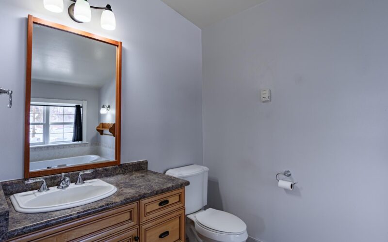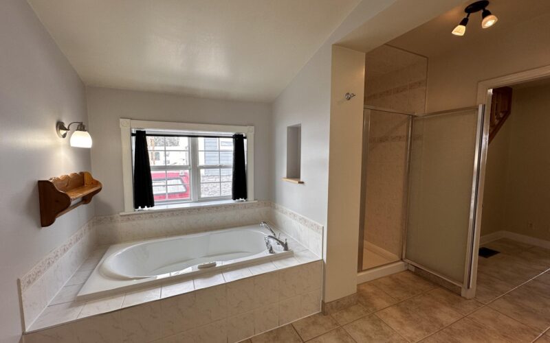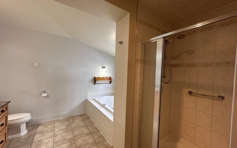 - Two baths with walk-in showers and a soaker-style tub with air jets